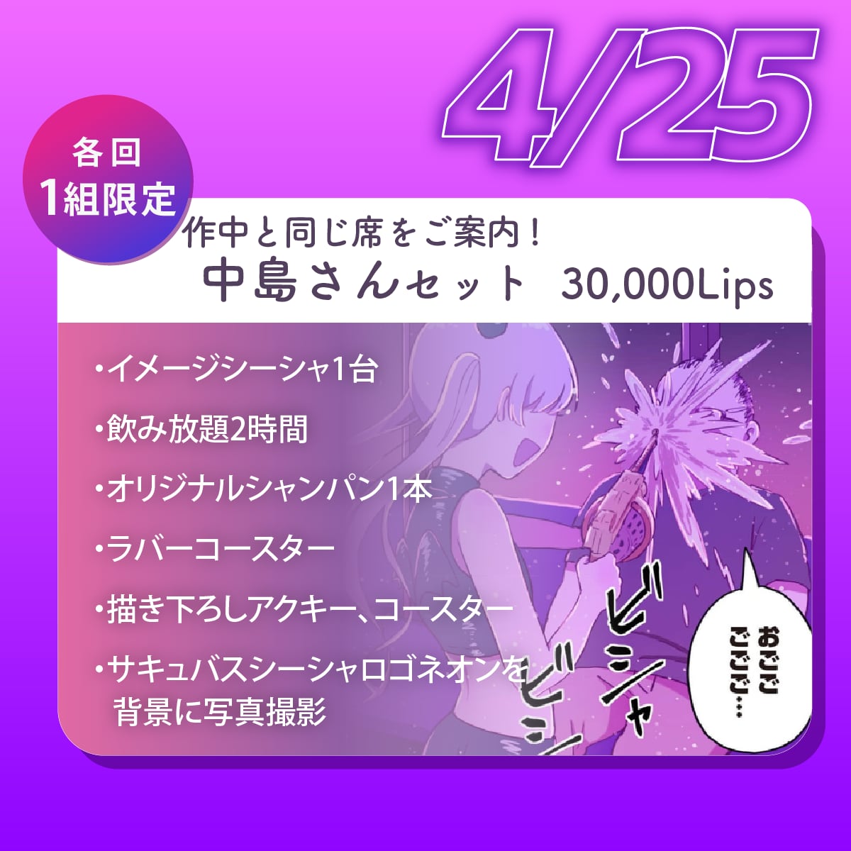 【1組限定】4/25(土) 中島さんスペシャル|作中再現VIP席